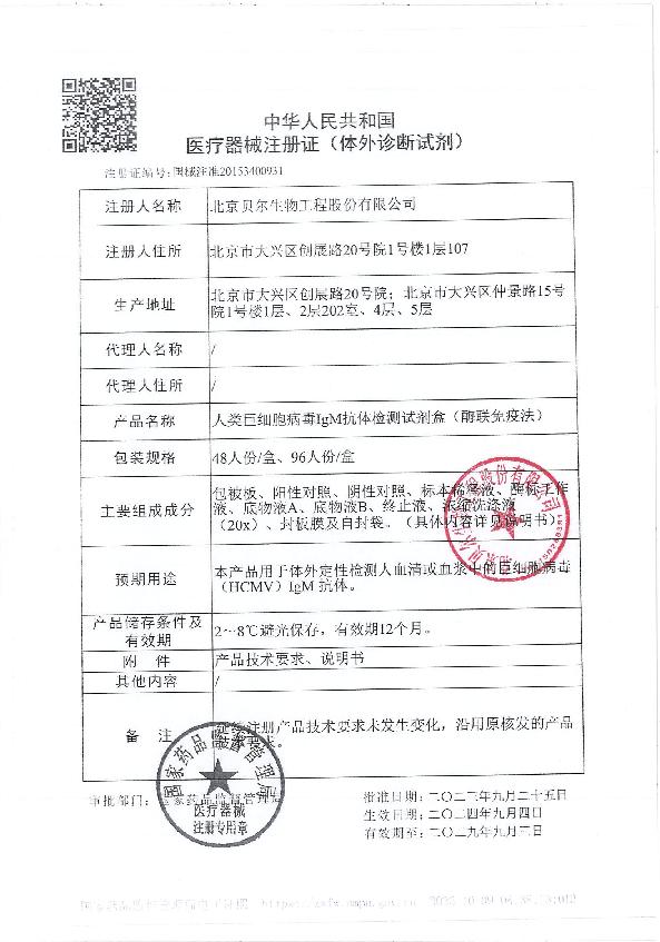 贝尔人类巨细胞病毒IgM抗体检测试剂盒(酶联免疫法)