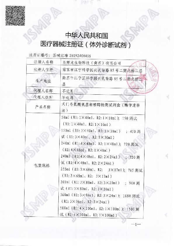 南京亚辉龙生产许可证