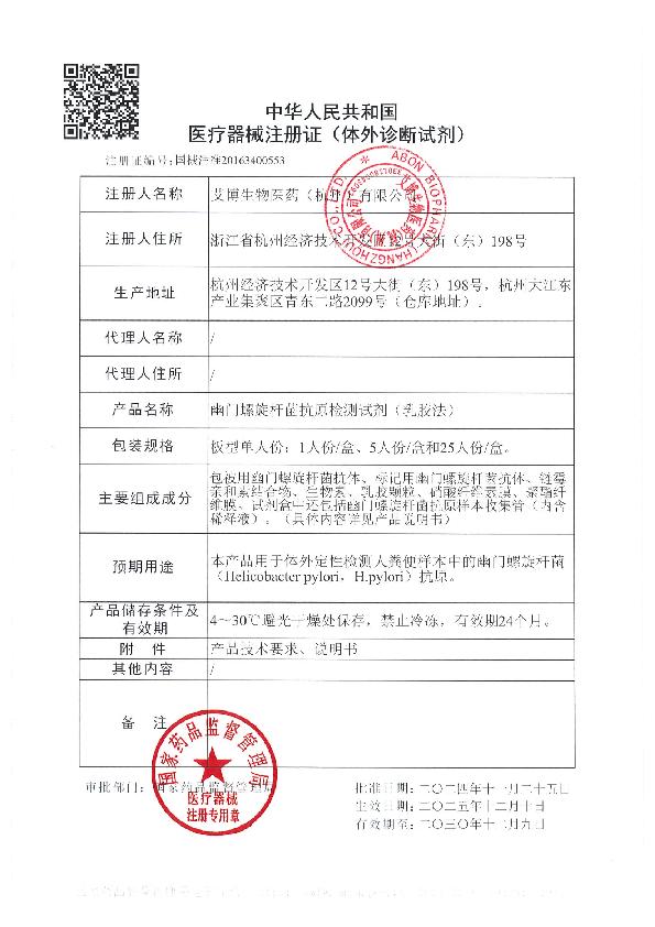 | 适用范围/预期用途 | 幽门螺旋杆菌抗原检测试剂(乳胶法)用于定性检测人粪便样本中的幽门螺旋杆菌(Helicobacter pylori,H.pylori)抗原。 |