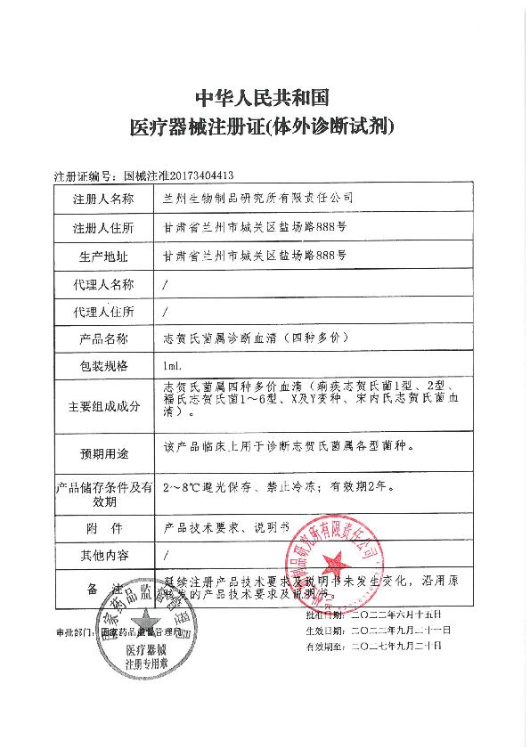 兰州生物 志贺氏菌属诊断血清(四种多价)