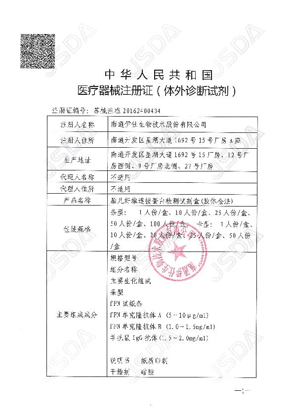 胎儿纤维连接蛋白检测试剂盒(胶体金法)