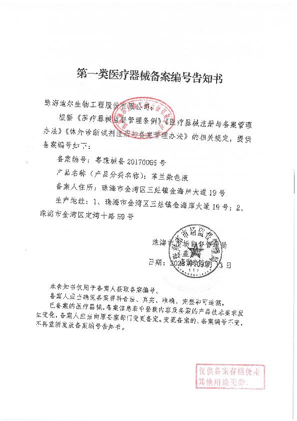 粤珠食药监械生产备20150014号