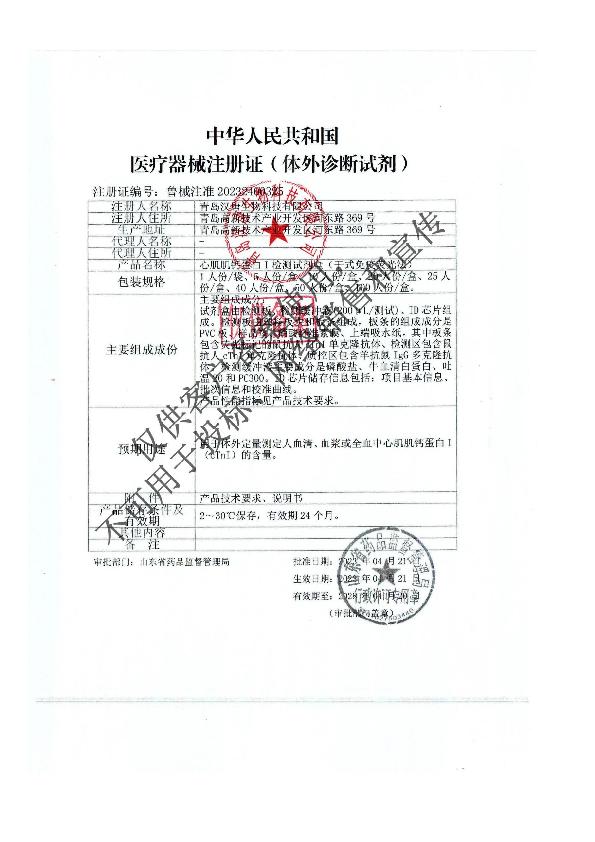 心肌肌钙蛋白I检测试剂盒(干式免疫荧光法)