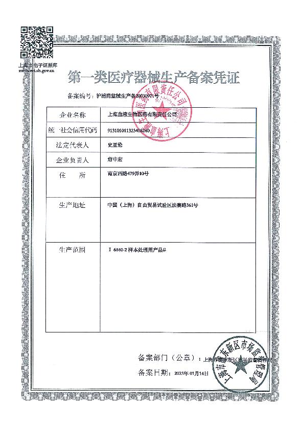 血液一类生产备案