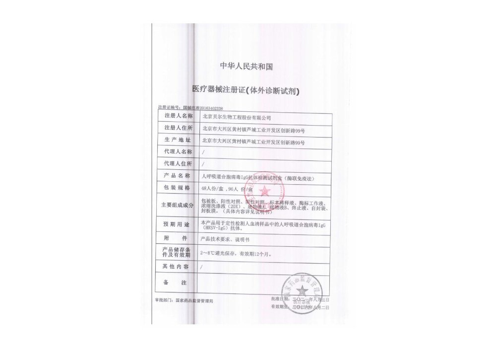 贝尔 贝尔 人呼吸道合胞病毒IgG抗体检测试剂盒(酶联免疫法)