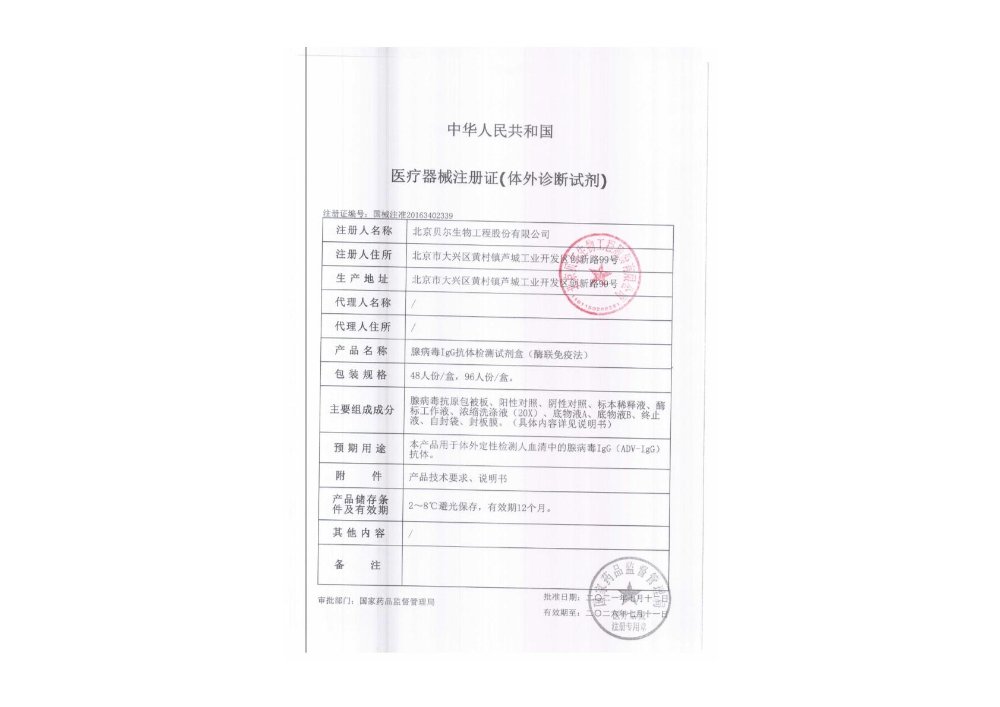 贝尔 腺病毒IgG抗体检测试剂盒(酶联免疫法)