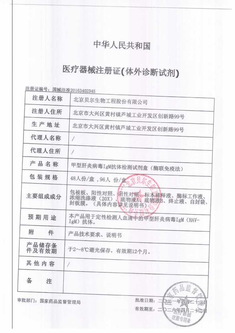 贝尔 甲型肝炎病毒IgM抗体检测试剂盒(酶联免疫法)