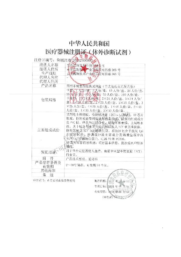 同型半胱氨酸检测试剂盒(干式免疫荧光发光法)