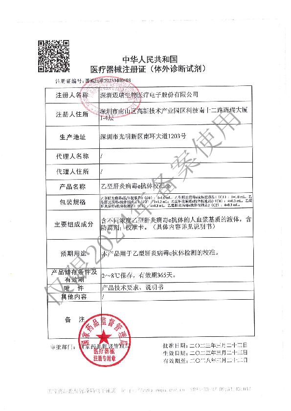 迈瑞医疗 乙型肝炎病毒e抗体校准品