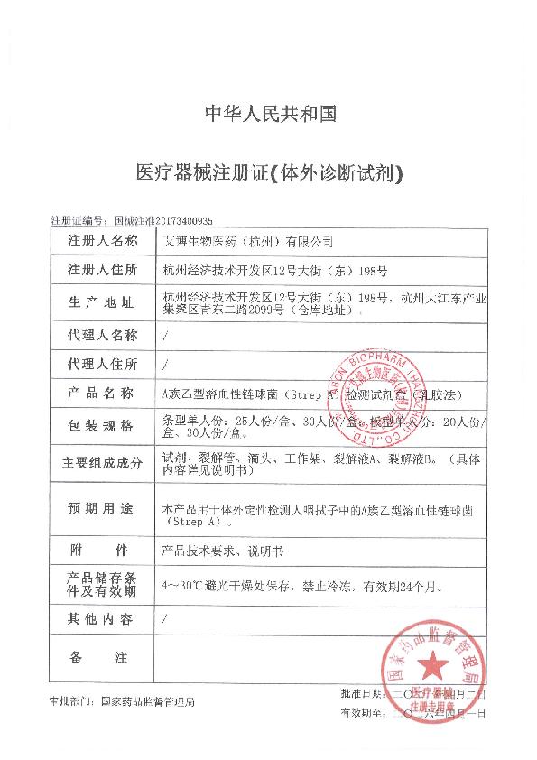 艾博A族乙型溶血性链球菌(StrepA)检测试剂盒(乳胶法)