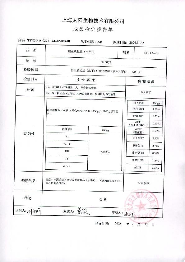 凝血酶原时间(PT)测定试剂盒(冻干型)(凝固法)