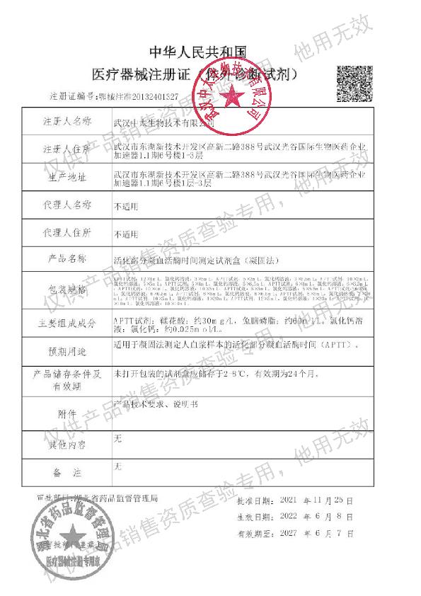 适用于凝固法测定人血浆样本的活化部分凝血活酶时间(APTT)。