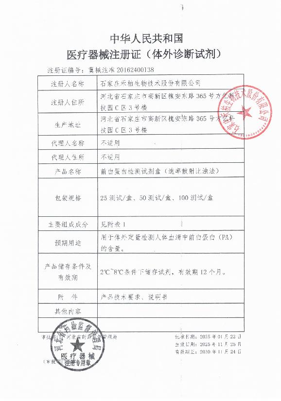 用于体外定量检测人体血清中前白蛋白(PA)的含量