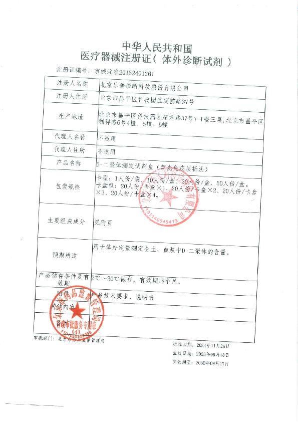乐普D-二聚体测定试剂盒(荧光免疫层析法)