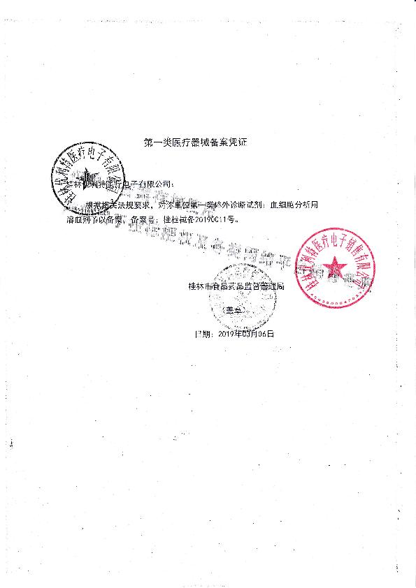 桂桂食药监械生产备20150006号