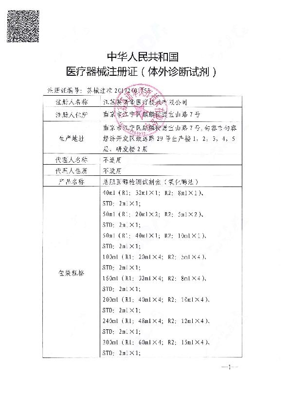 | 型号规格 | 40ml(R1:32ml×1;R2:8ml×1)、STD:2ml×1;50ml(R1:20ml×2;R2:5ml×2)、STD:2ml×1;50ml(R1:40ml×1;R2:10ml×1)、STD:2ml×1;100ml(R1:20ml×4;R2:5ml×4)、STD:2ml×1;160ml(R1:32ml×4;R2:8ml×4)、STD:2ml×1;200ml(R1:40ml×4;R2:10ml×4)、STD:2ml×1;240ml(R1:48ml×4;R2:12ml×4)、STD:2ml×1;300ml(R1:60ml×4;R2:15ml×4)、STD:2ml×1;400ml(R1:80ml×4;R2:20ml×4)、STD:2ml×1;500ml(R1:100ml×4;R2:25ml×4)、STD:2ml×1。 |