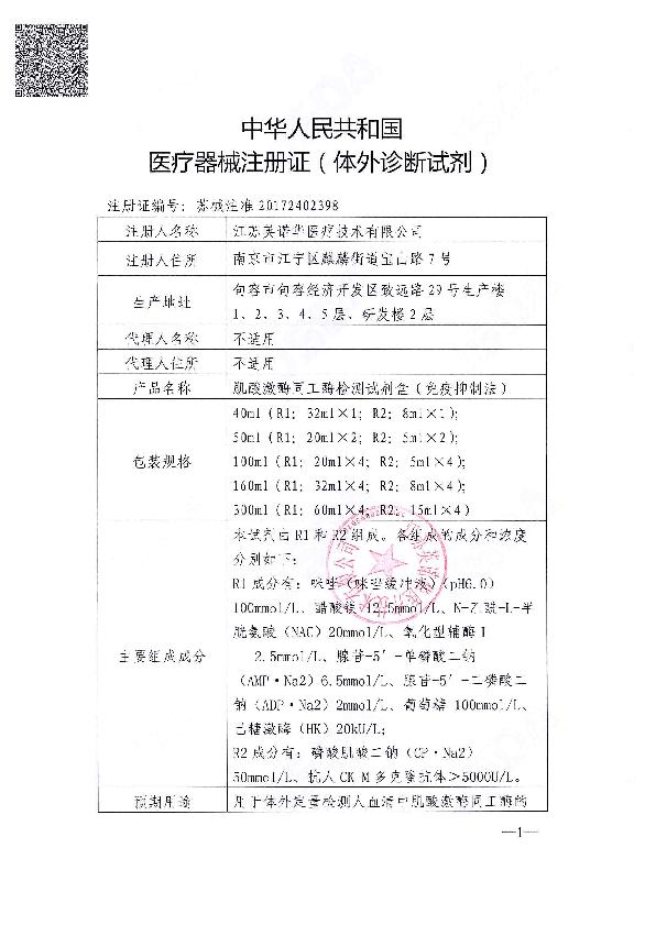 英诺华肌酸激酶同工酶检测试剂盒(免疫抑制法)