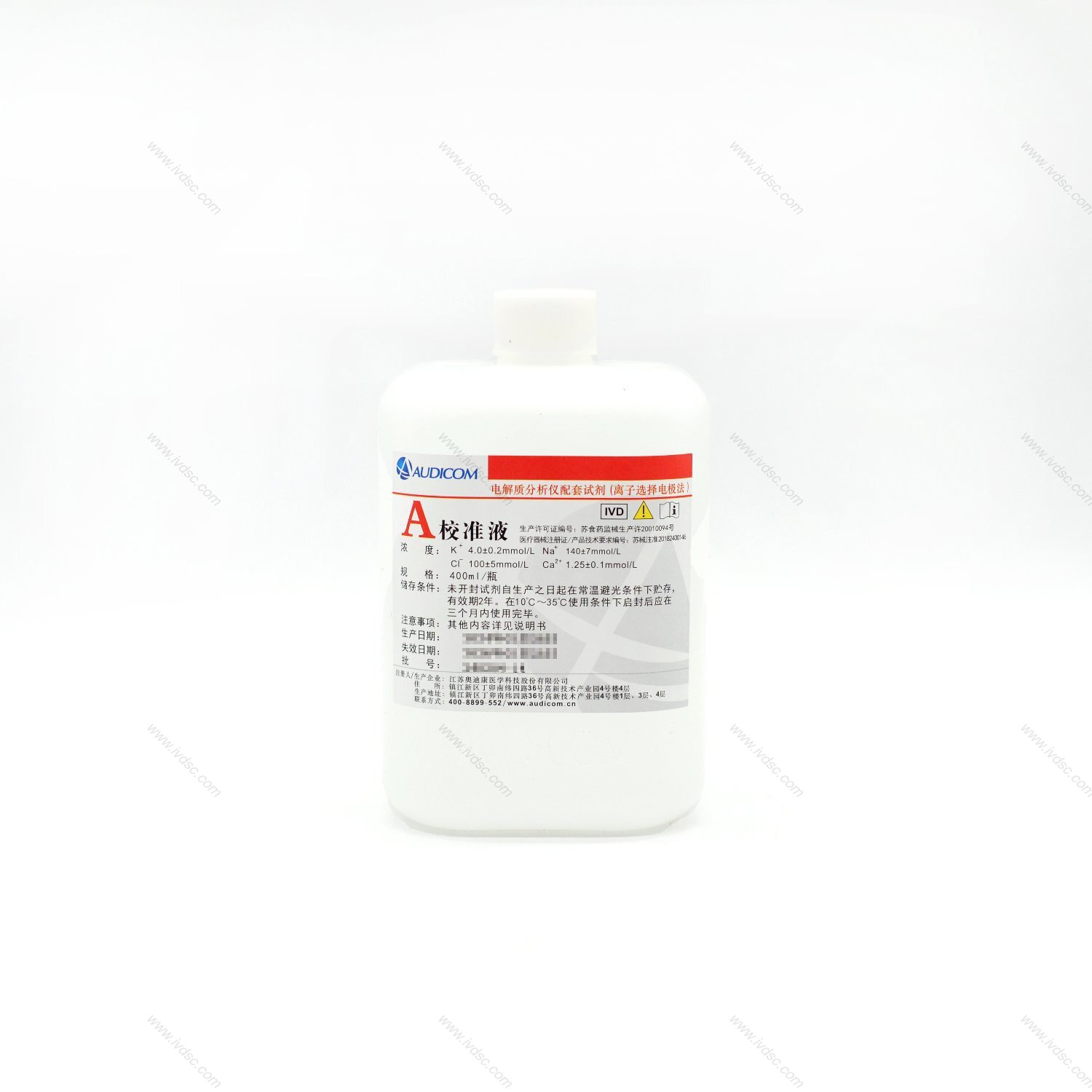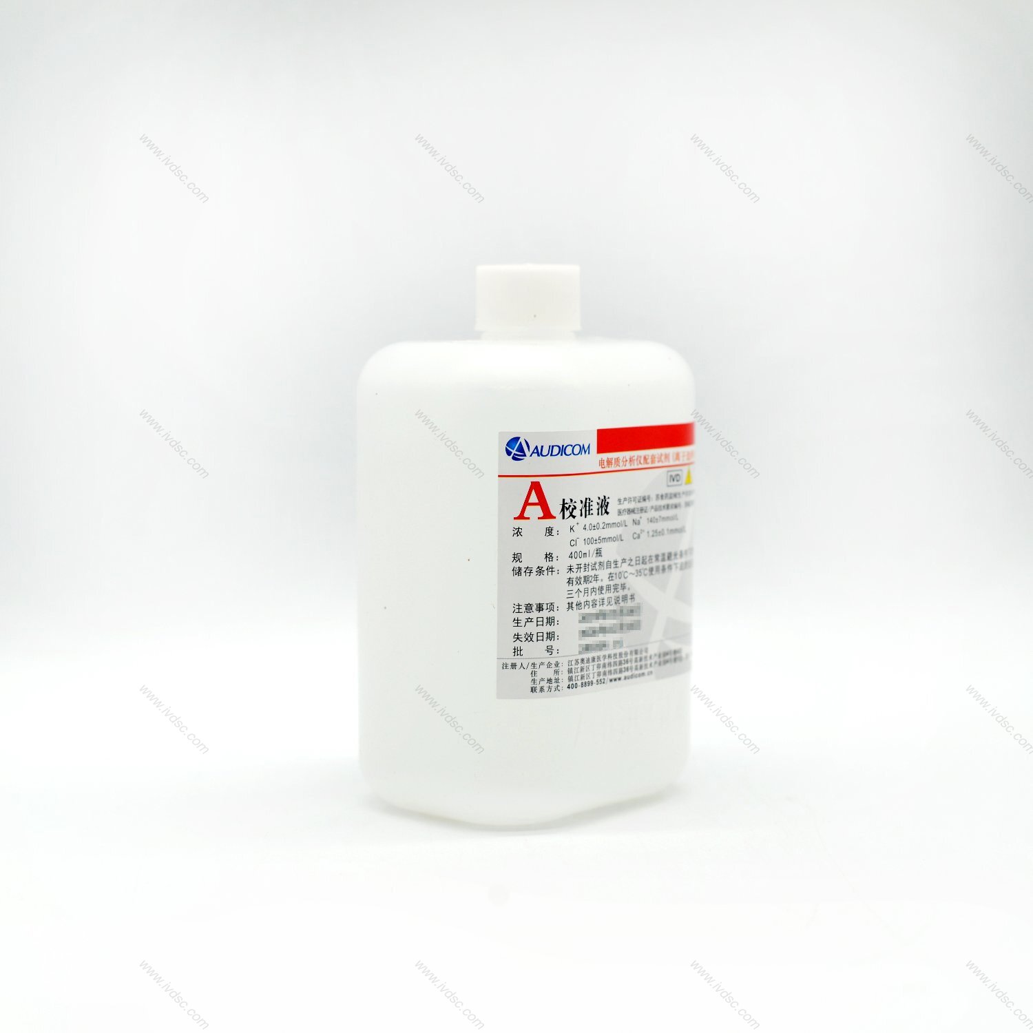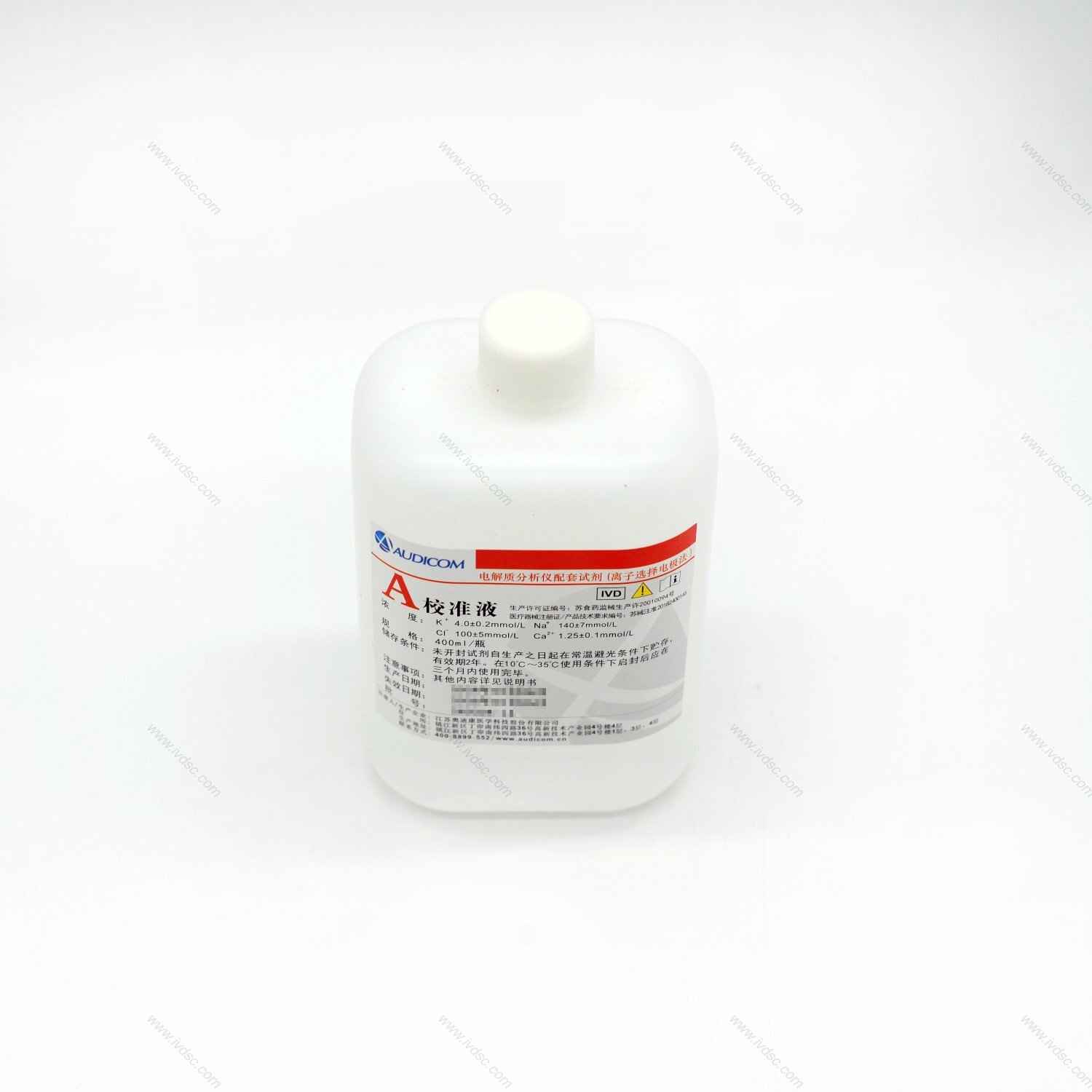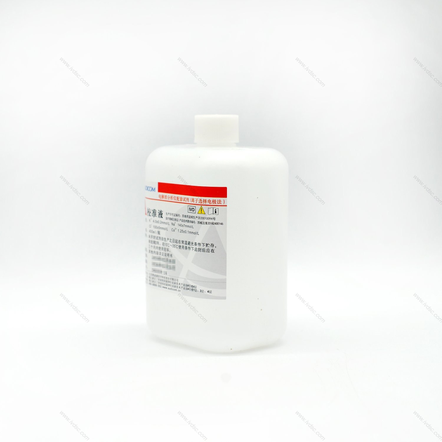 结构及组成/主要组成成分:电解质分析仪配套试剂(离子选择电极法)由A校准液、B斜标液、R反应液(pH≤2.5)、C校准液组成。主要组成成分:A校准液:氢氧化钠(0.050%)、醋酸钙(0.026%)、氯化钠(0.589%)、氯化钾(0.031%)、去离子水;B斜标液:氢氧化钠(0.035%)、醋酸钙(0.054%)、氯化钠(0.386%)、氯化钾(0.062%)、去离子水;R反应液:乳酸(约12.06%)、去离子水;C校准液:碳酸氢钠(0.225%)、去离子水。