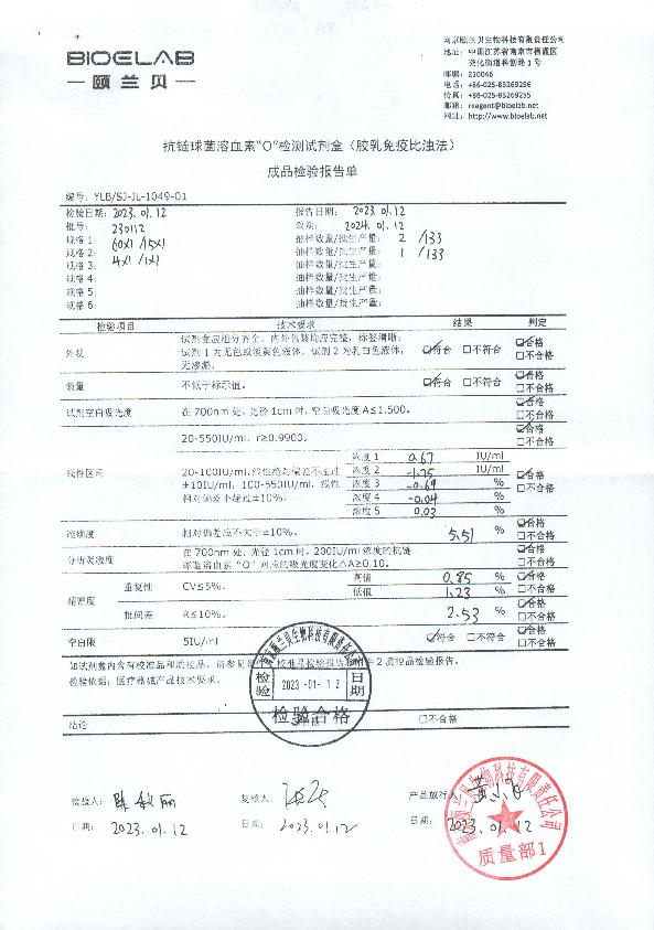 抗链球菌溶血素O检测试剂盒(胶乳免疫比浊法)