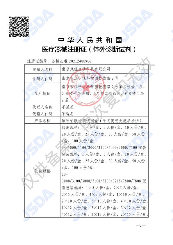 B型钠尿肽检测试剂盒(干式荧光免疫层析法)