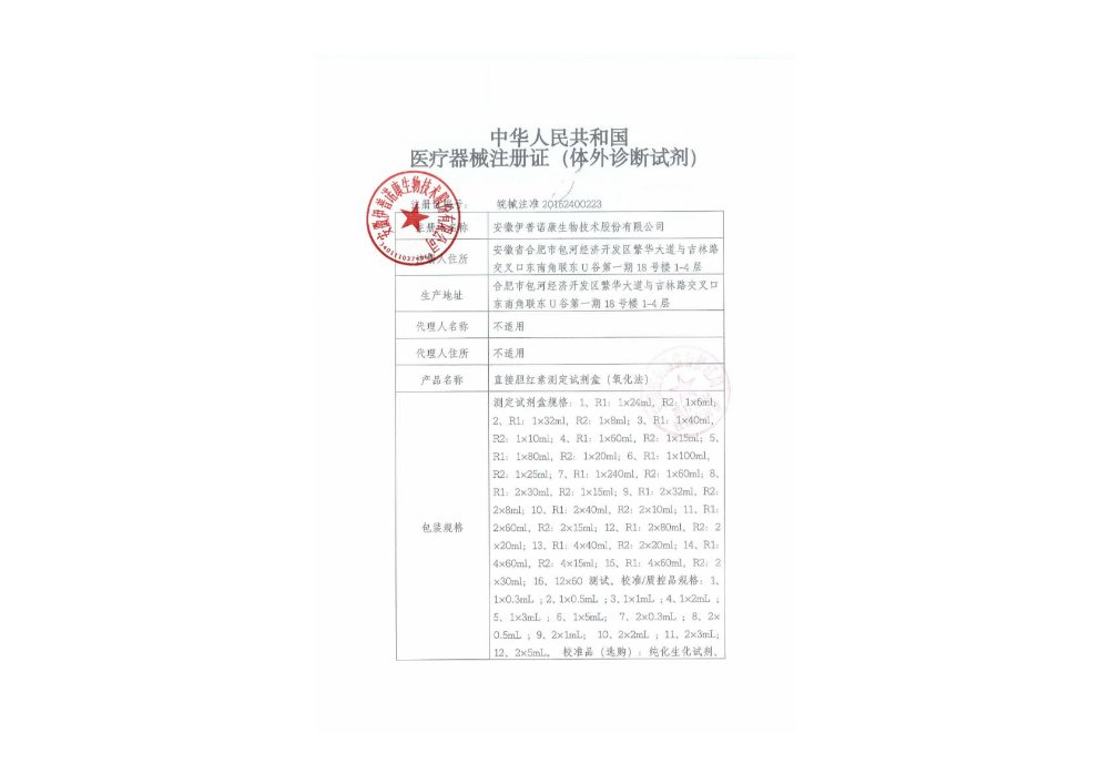 皖合食药监械经营备20180136号