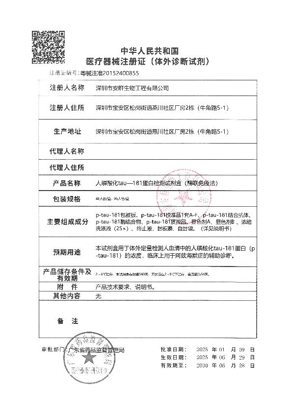 安群人磷酸化tau-181蛋白检测试剂盒(酶联免疫法)