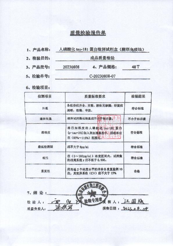 人磷酸化tau-181蛋白检测试剂盒(酶联免疫法)