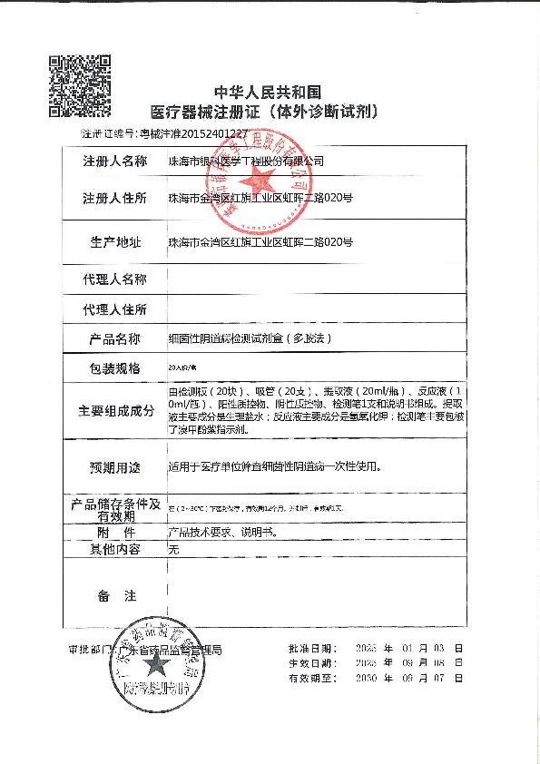 粤珠食药监械经营许20150078号