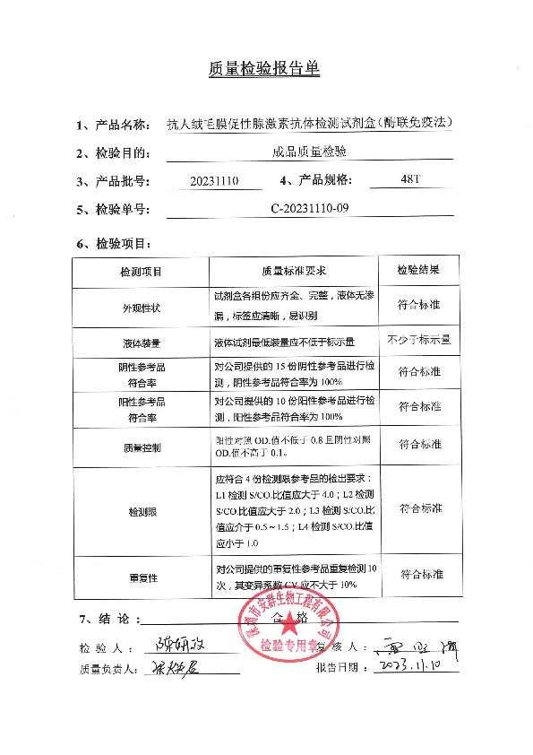 安群 抗人绒毛膜促性腺激素抗体检测试剂盒(酶联免疫法)