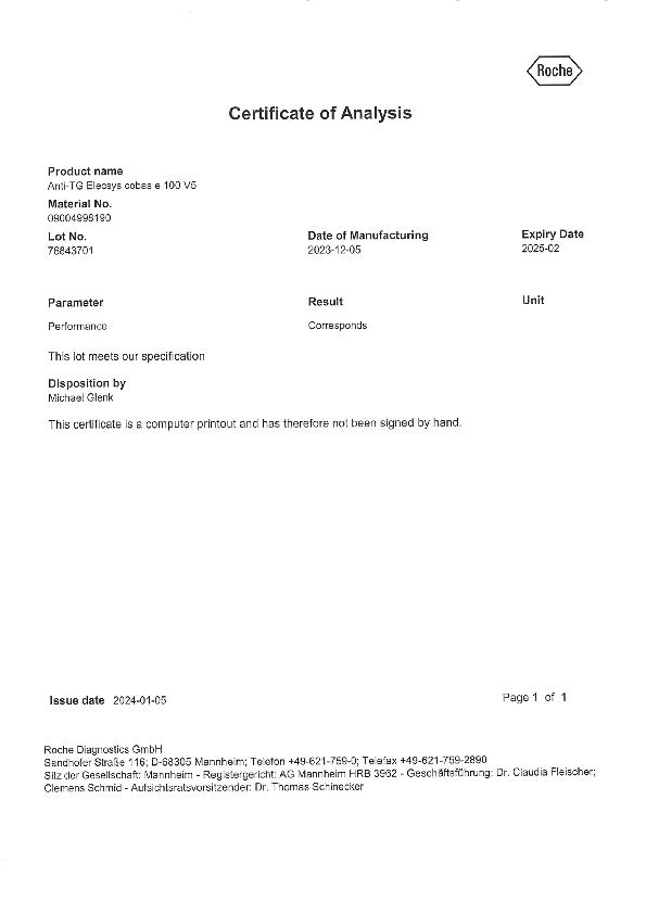罗氏甲状腺球蛋白抗体检测试剂盒(电化学发光法)