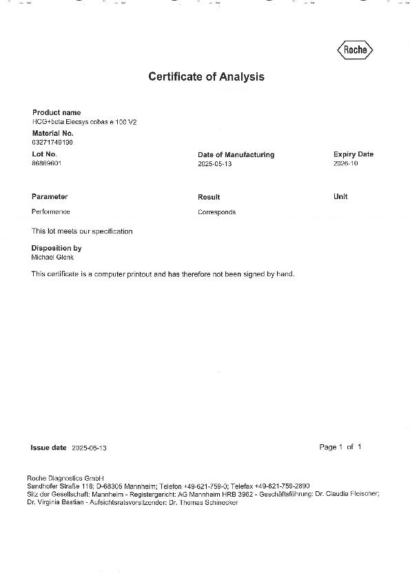 罗氏绒毛膜促性腺激素及β亚单位检测试剂盒(电化学发光法)