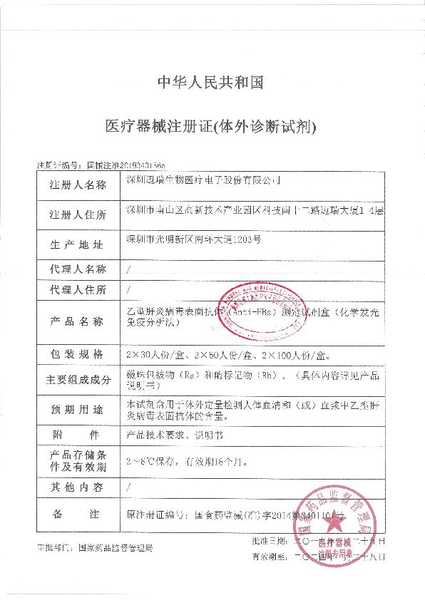 迈瑞三类经营许可