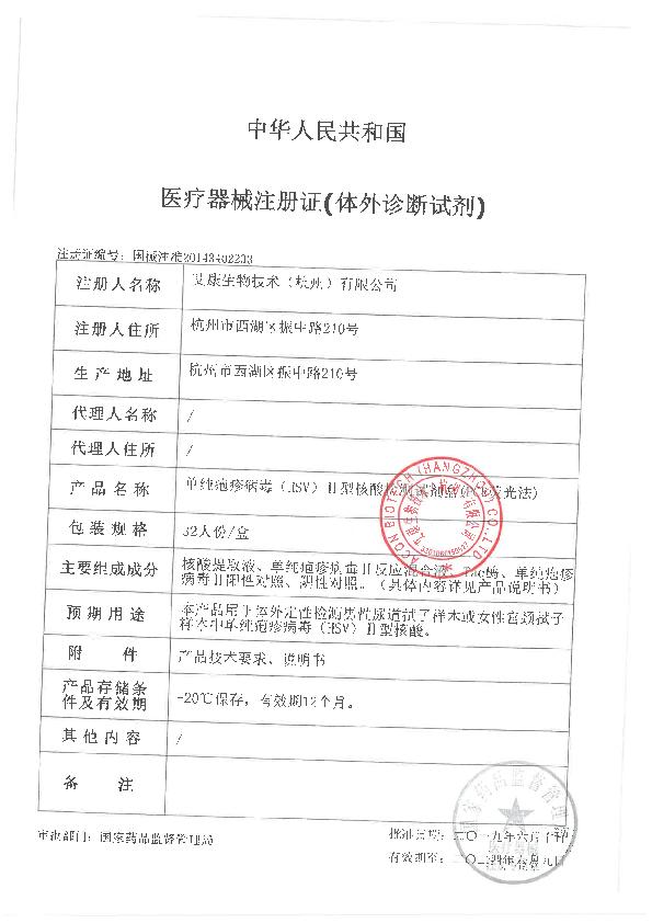 浙杭食药监械经营备20160295号