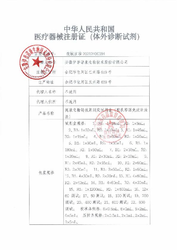 涎液化糖链抗原测定试剂盒(胶乳增强免疫比浊法)