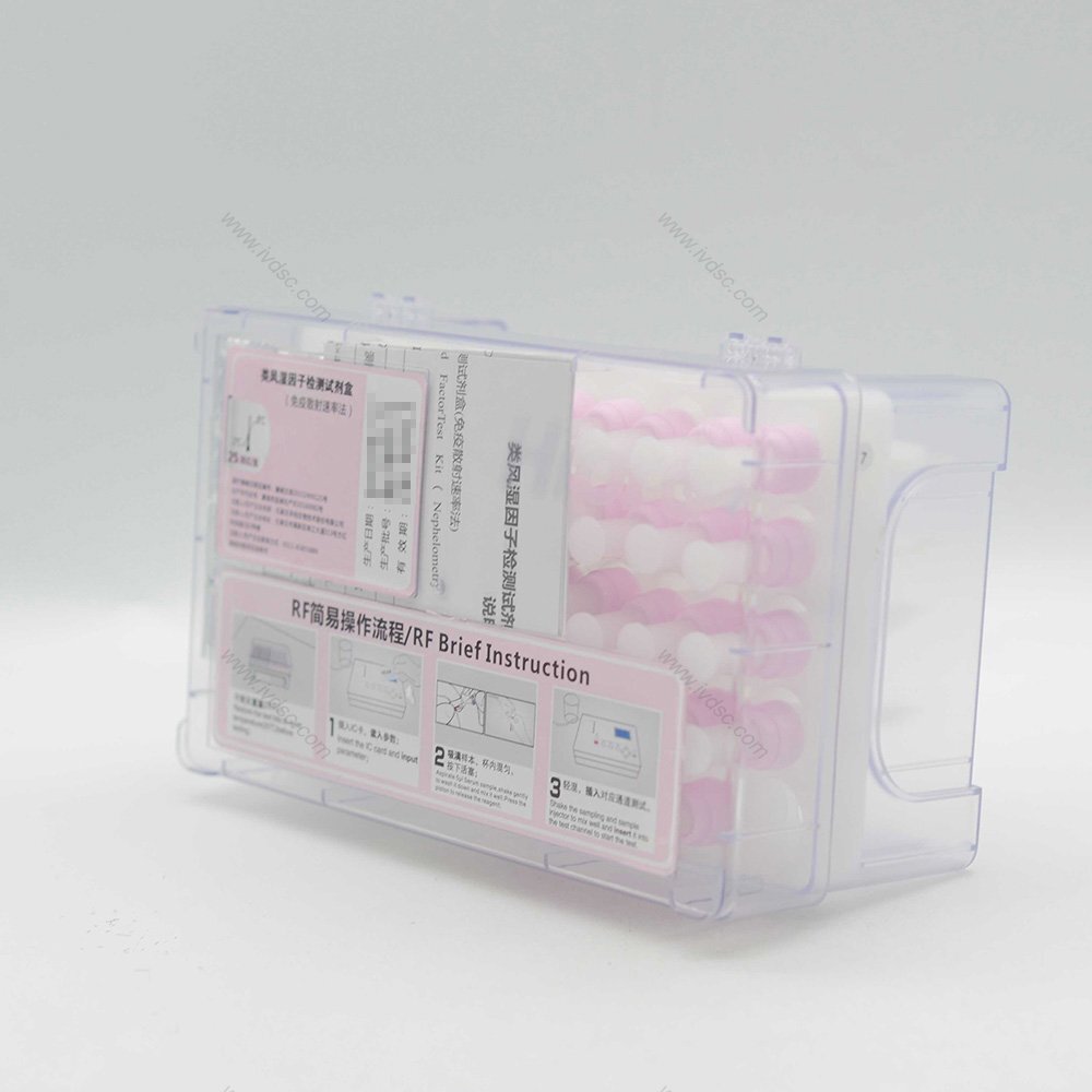 试剂1(反应杯):0.2mol/L氯化铵的缓冲液;硅胶帽或铝塑封口膜。试剂2:γ-球蛋白、聚苯乙烯乳胶颗粒。