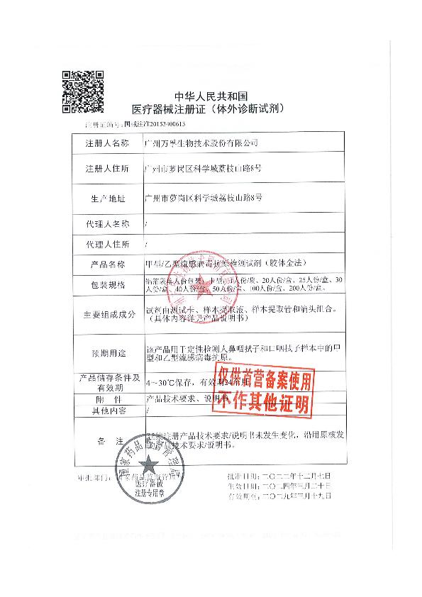 甲型/乙型流感病毒抗原检测试剂(胶体金法)