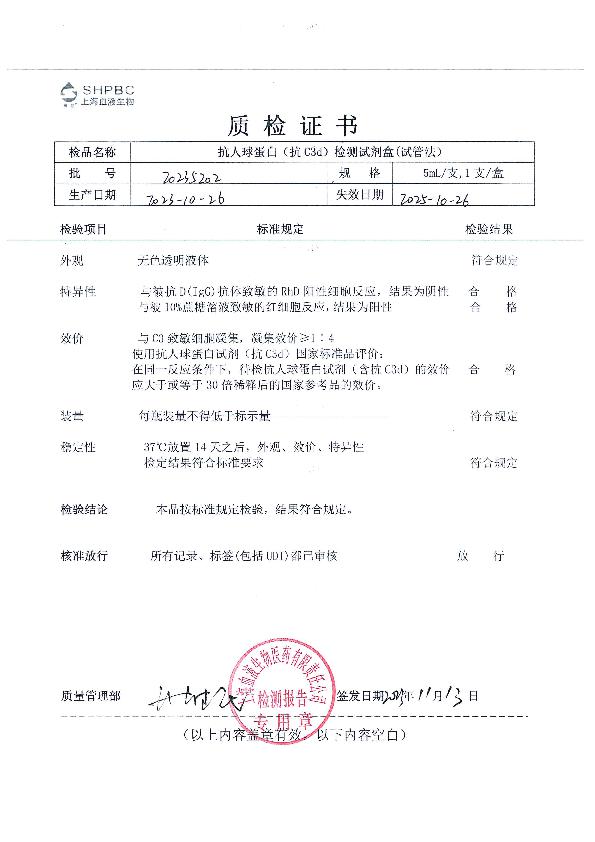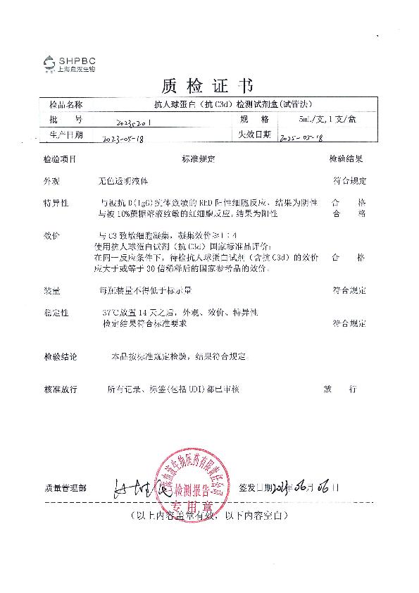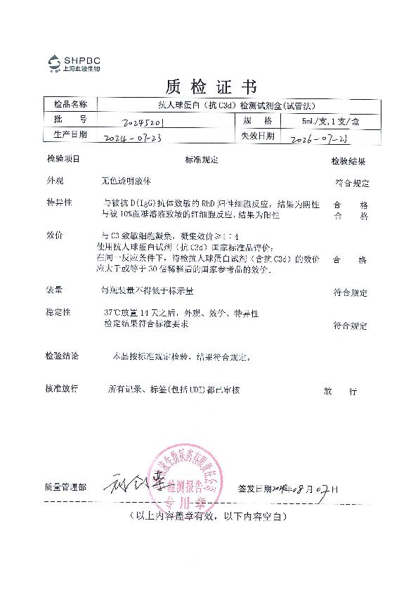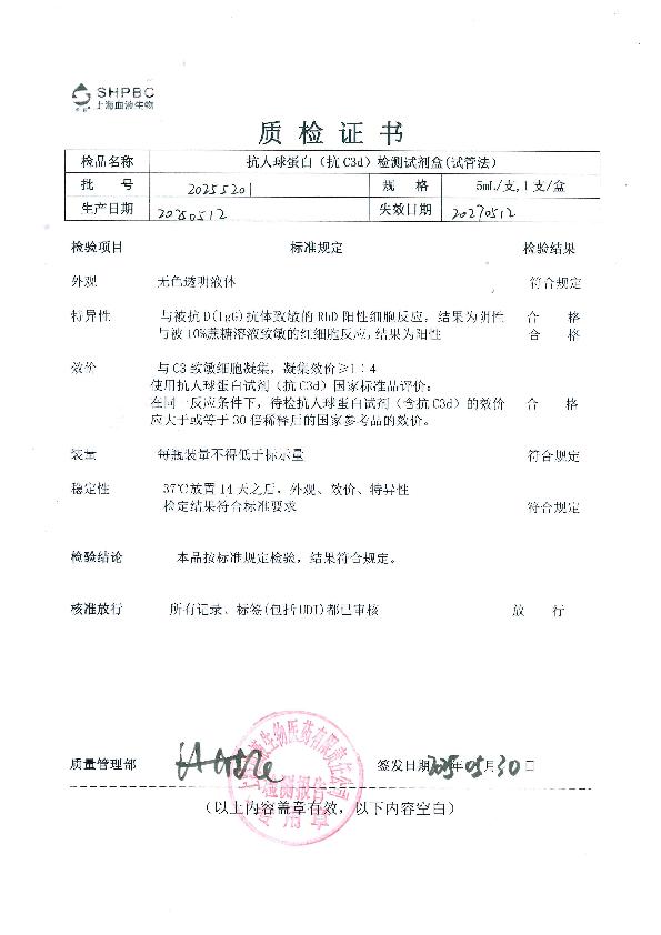 抗人球蛋白(抗C3d)检测试剂盒(试管法)