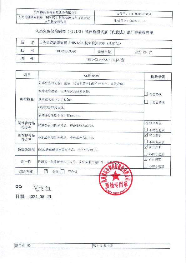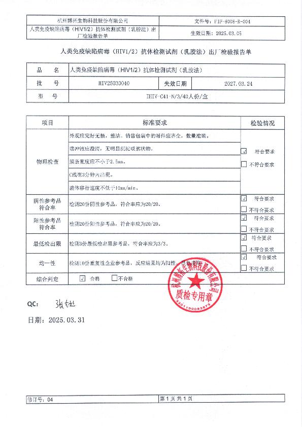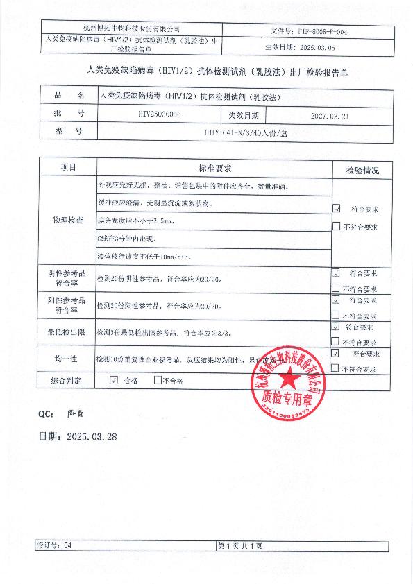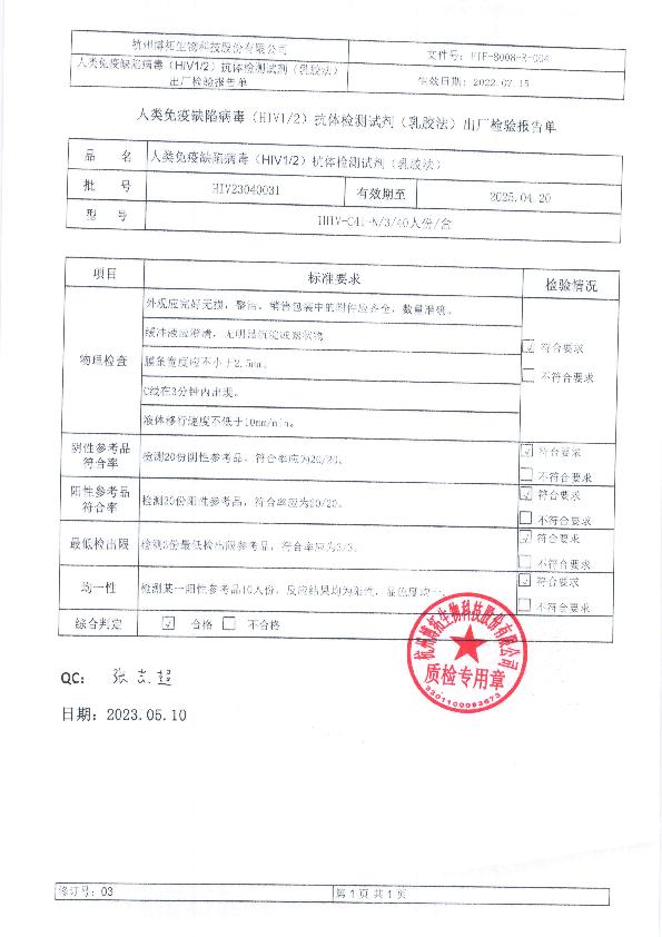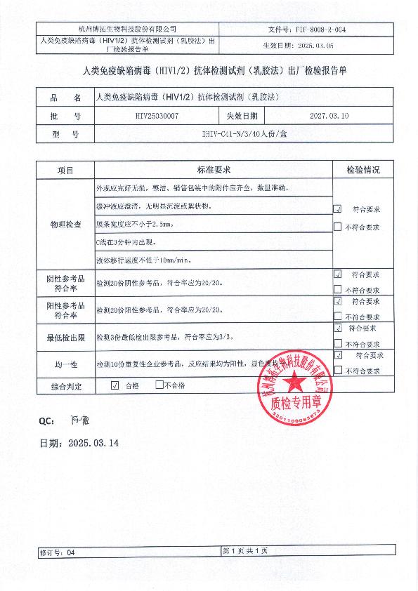 人类免疫缺陷病毒(HIV1/2)抗体检测试剂(乳胶法)