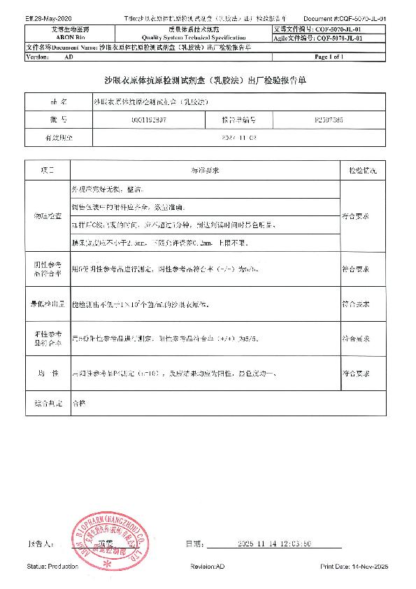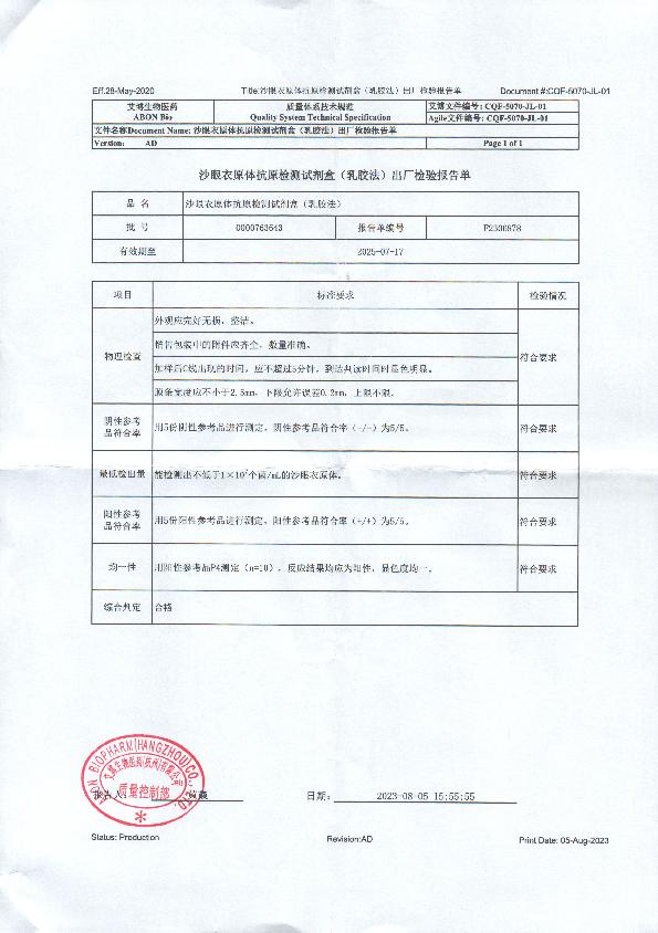 沙眼衣原体抗原检测试剂盒(乳胶法)