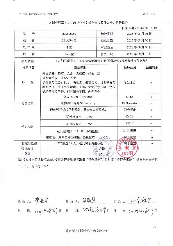 人细小病毒B19IgM抗体检测试剂盒(胶体金法)