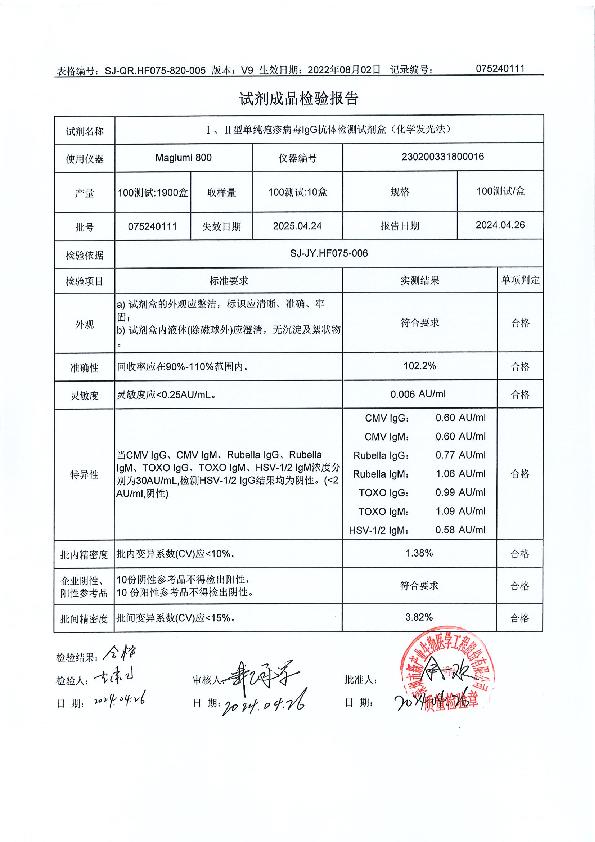 新产业 I、II型单纯疱疹病毒IgG抗体检测试剂盒(化学发光法)