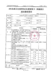 ABO血型正定型和RbD血型复检卡(纸板法)