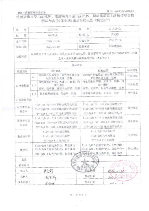 英诺特 流感病毒A型IgM抗体、流感病毒B型IgM抗体、副流感病毒IgM抗体联合检测试剂盒(胶体金法)说明书