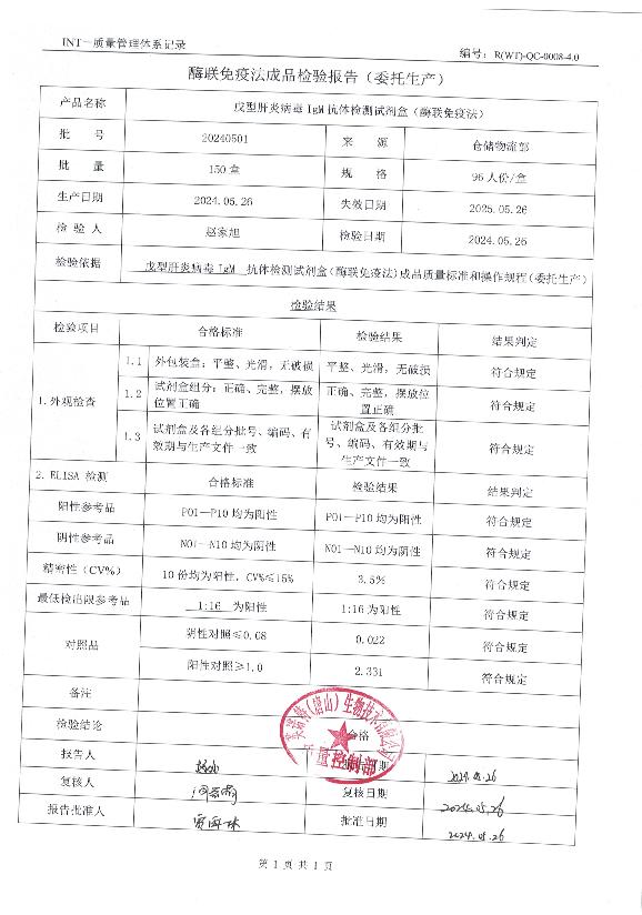 戊型肝炎病毒IgM抗体检测试剂盒(酶联免疫法)