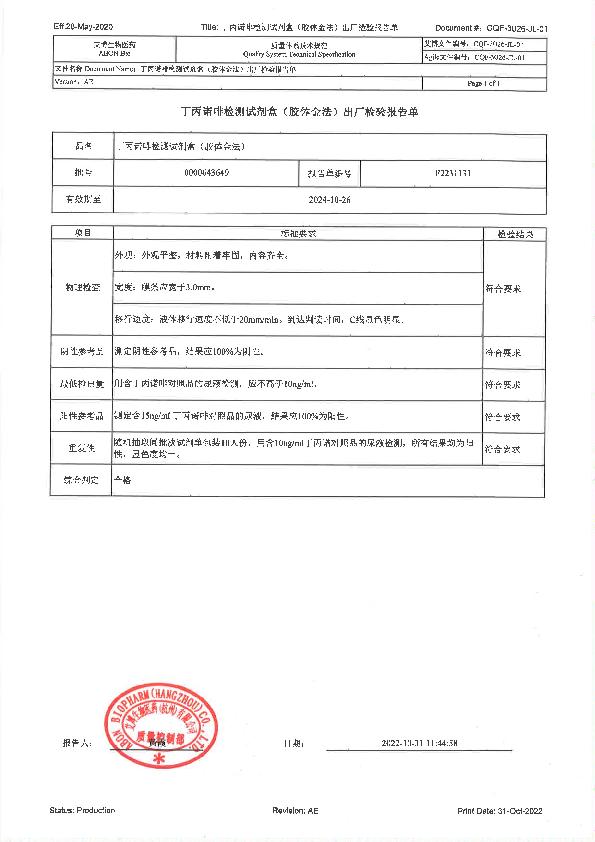 艾博 丁丙诺啡检测试剂盒(胶体金法)