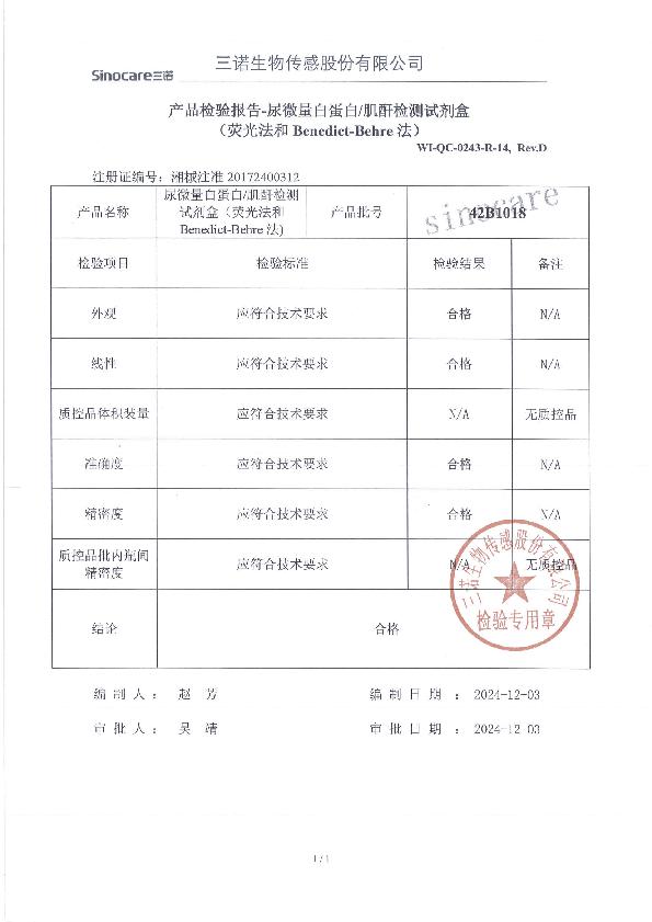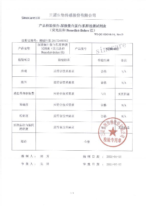 尿微量白蛋白/肌酐检测试剂盒(荧光法和Benedict-Behre法)