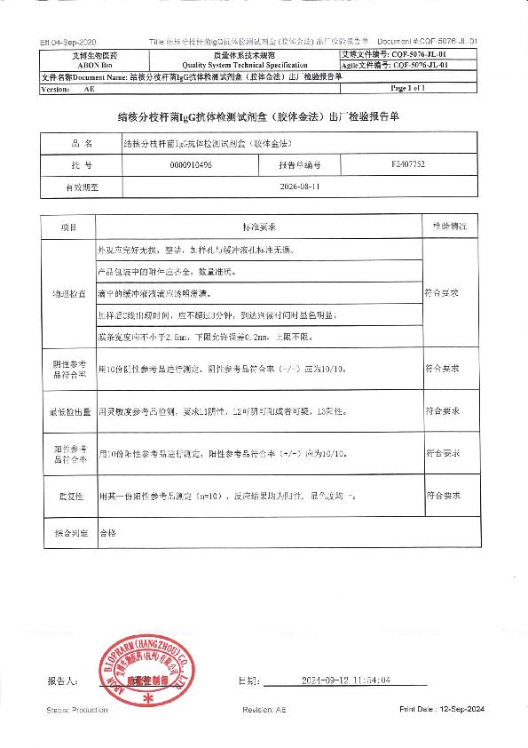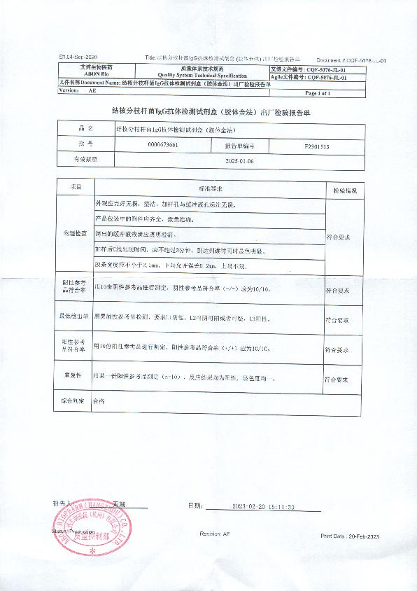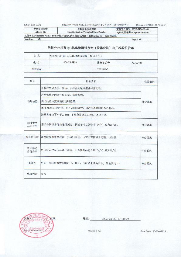艾博 结核分枝杆菌IgG抗体检测试剂盒(胶体金法)说明书