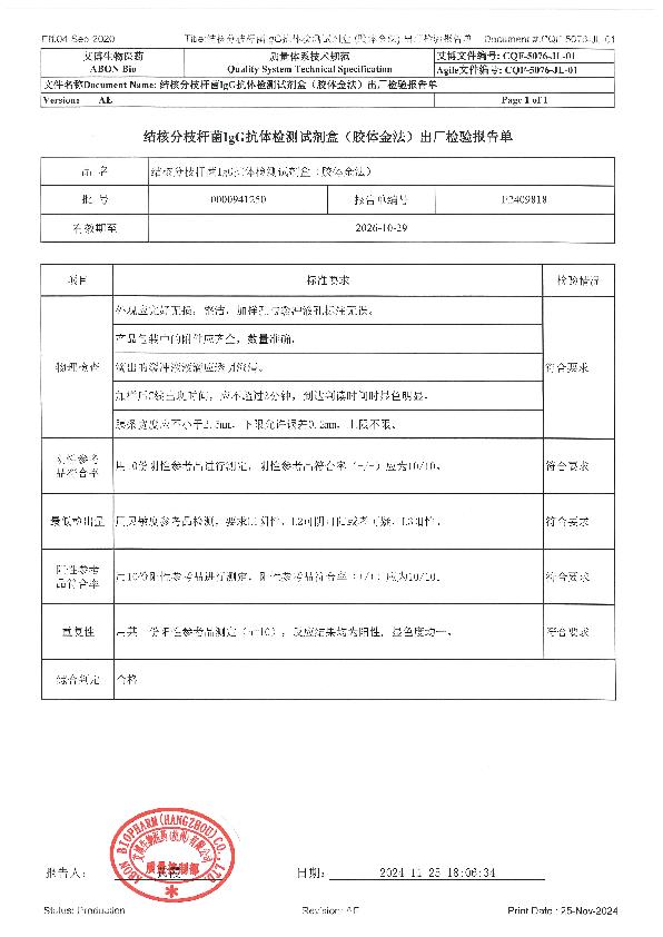 艾博结核分枝杆菌IgG抗体检测试剂盒(胶体金法)