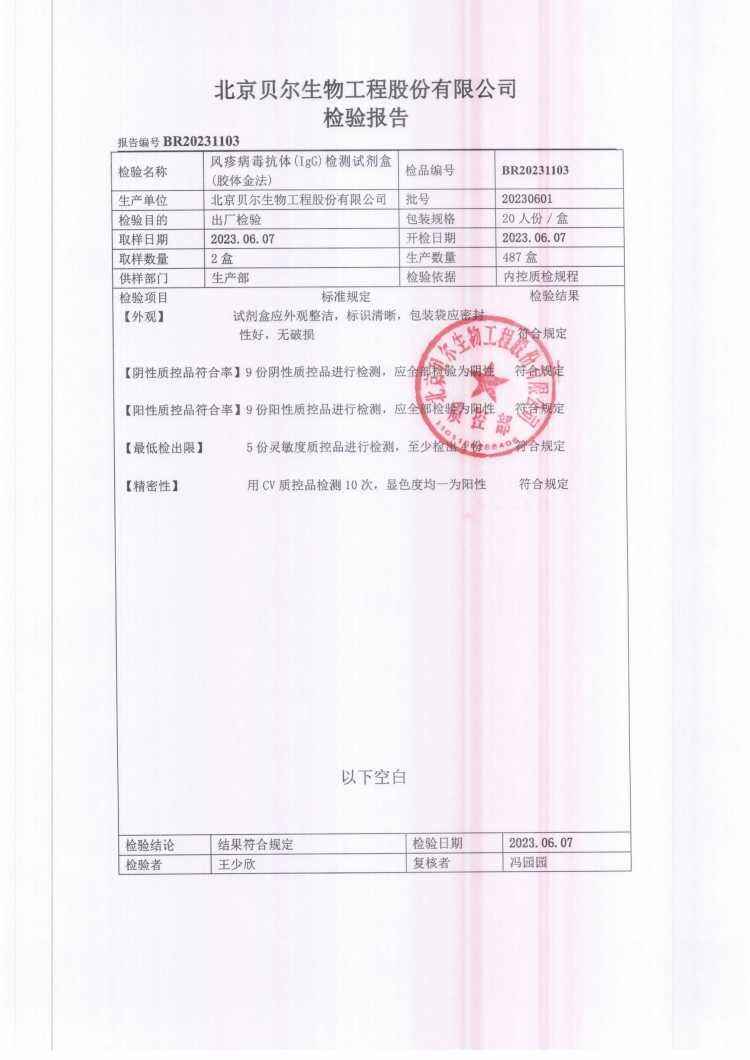 贝尔 风疹病毒抗体(IgG)检测试剂盒(胶体金法)
