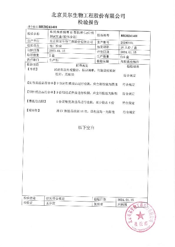 贝尔 单纯疱疹病毒II型抗体(IgG)检测试剂盒(胶体金法)说明书